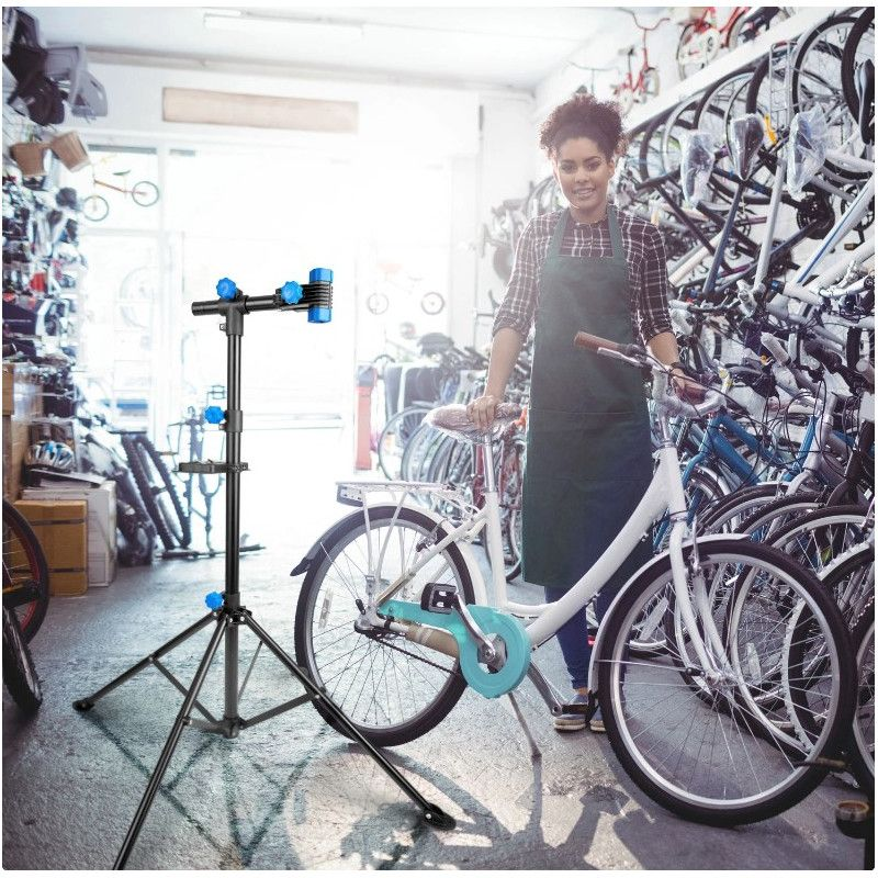 Stojak umożliwia wszechstronną regulację rozstawu oraz wysokości co umożliwia serwisowanie rowerów o różnych rozmiarach, a także dopasowanie ustawień do osoby wykonującej serwis, aby pozycja była jak najbardziej ergonomiczna i wygodna.