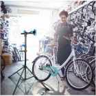 - Obrotowa głowica i konstrukcja umożliwiają obracanie roweru o 360 stopni, ułatwiając dostęp do wszystkich jego elementów.