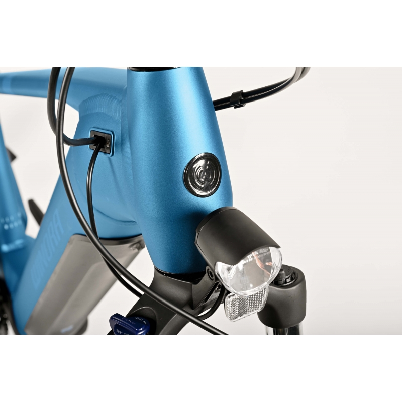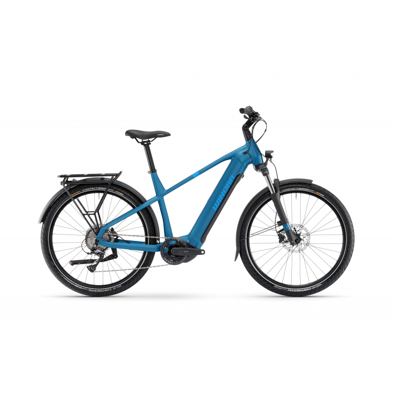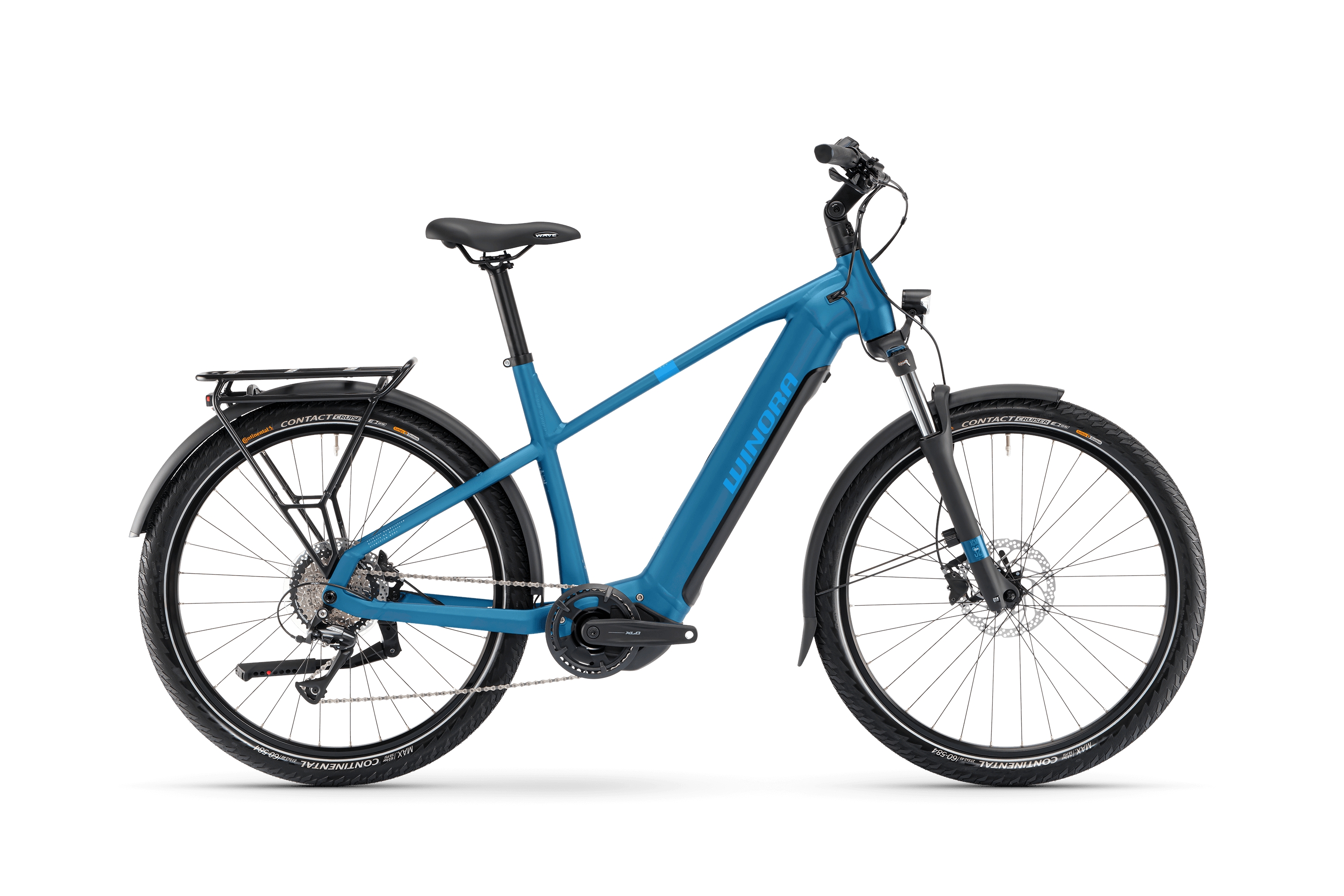 High ciemno niebieski - Winora Yucatan X8 - trekkingowy e-bike z silnikiem Yamaha PW-Sw, 720 Wh baterią i amortyzacją 100 mm. Idealny na długie trasy i mikro-wyjazdy po niebrukowanych drogach.