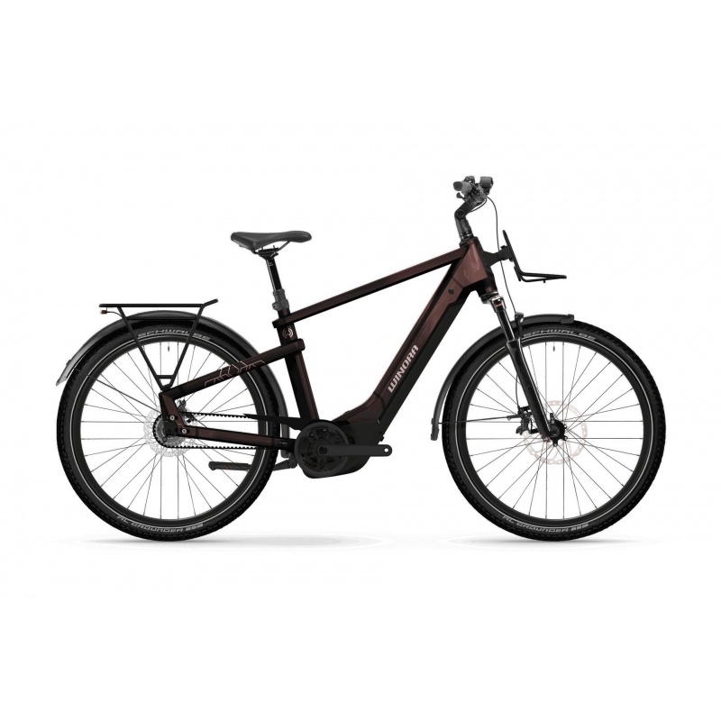 Nowy model WINORA Yakun X10E sprawia, że czujesz się jak w prawdziwym SUVie. Ten solidny e-bike trekkingowy sprawdza się równie świetnie w mieście jak i na leśnych ścieżkach. Mocny silnik Bosch Performance CS Smart System zapewnia użytkownikowi wydajne i długotrwałe wspomaganie, zwłaszcza podczas jazdy z bagażem na standardowym bagażniku tylnym lub opcjonalnym bagażniku przednim. Dzięki niezawodnym przerzutkom Shimano z 10 ustawieniami zawsze będziesz jechać na optymalnie dobranym przełożeniu, z kolei hydrauliczne hamulce tarczowe Shimano oznaczają, że kontrolujesz swojego e-bike’a w każdej sytuacji. Dopełnienie całości stanowi wyposażenie zgodne z przepisami kodeksu drogowego: model Yakun X10E jest uniwersalnym e-bike'iem trekkingowym dla początkujących, oferowanym w rozsądnej cenie. Rower ten dostępny jest w dwóch wariantach ramy: jako model unisex oraz jako wygodny model z niską ramą (damka).