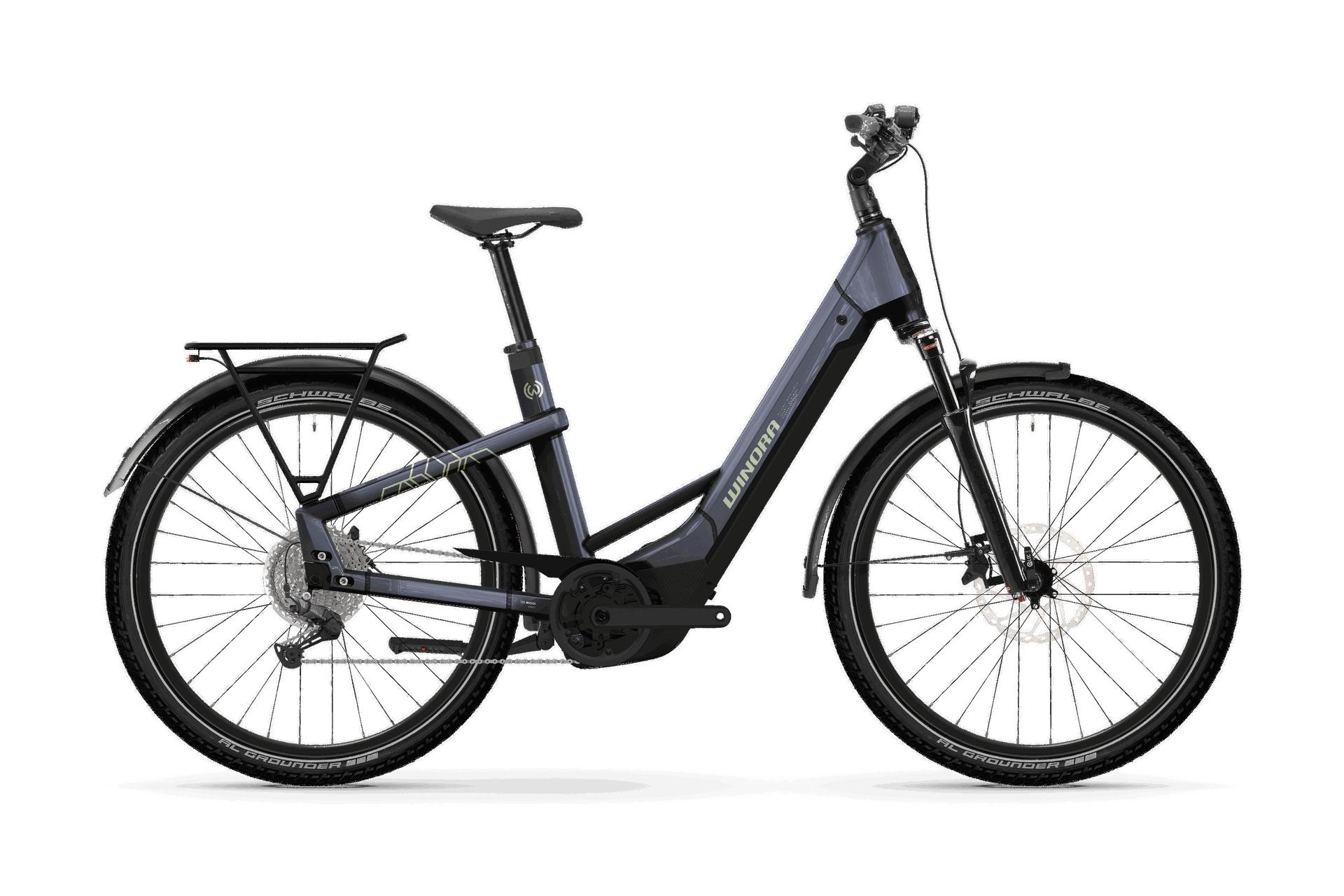 Nowy model WINORA Yakun X10E sprawia, że czujesz się jak w prawdziwym SUVie. Ten solidny e-bike trekkingowy sprawdza się równie świetnie w mieście jak i na leśnych ścieżkach. Mocny silnik Bosch Performance CS Smart System zapewnia użytkownikowi wydajne i długotrwałe wspomaganie, zwłaszcza podczas jazdy z bagażem na standardowym bagażniku tylnym lub opcjonalnym bagażniku przednim. Dzięki niezawodnym przerzutkom Shimano z 10 ustawieniami zawsze będziesz jechać na optymalnie dobranym przełożeniu, z kolei hydrauliczne hamulce tarczowe Shimano oznaczają, że kontrolujesz swojego e-bike’a w każdej sytuacji. Dopełnienie całości stanowi wyposażenie zgodne z przepisami kodeksu drogowego: model Yakun X10E jest uniwersalnym e-bike'iem trekkingowym dla początkujących, oferowanym w rozsądnej cenie. Rower ten dostępny jest w dwóch wariantach ramy: jako model unisex oraz jako wygodny model z niską ramą (damka).