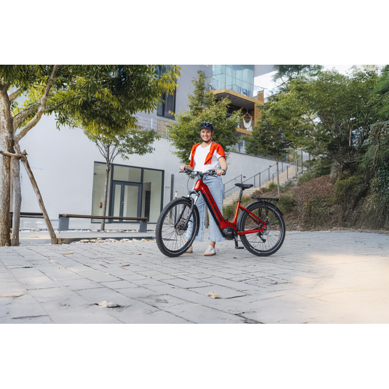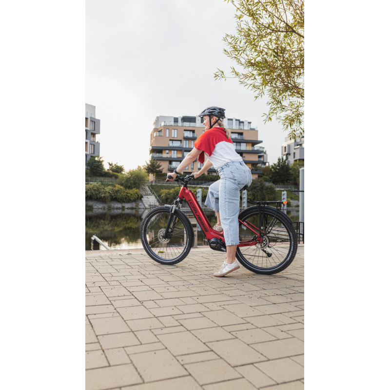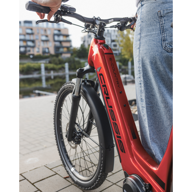 e-Country 7.11-(715 Wh) to idealny wybór dla tych, którzy szukają praktycznego roweru elektrycznego do codziennego użytku, a jednocześnie cenią sobie większą pojemność akumulatora. Obniżona geometria ramy ułatwia wsiadanie i zsiadanie, co szczególnie docenią Państwo podczas częstych postojów w mieście lub spokojnych wycieczek po okolicy.
